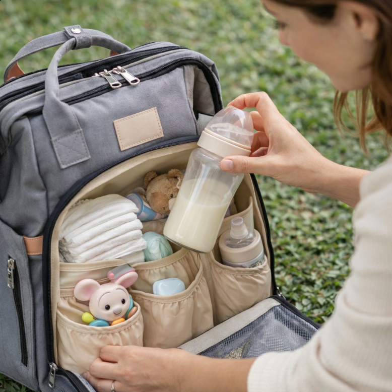 Lleva todo lo que tu bebé necesita (pañales, comida, juguetes y tabletas) en un solo lugar organizado.