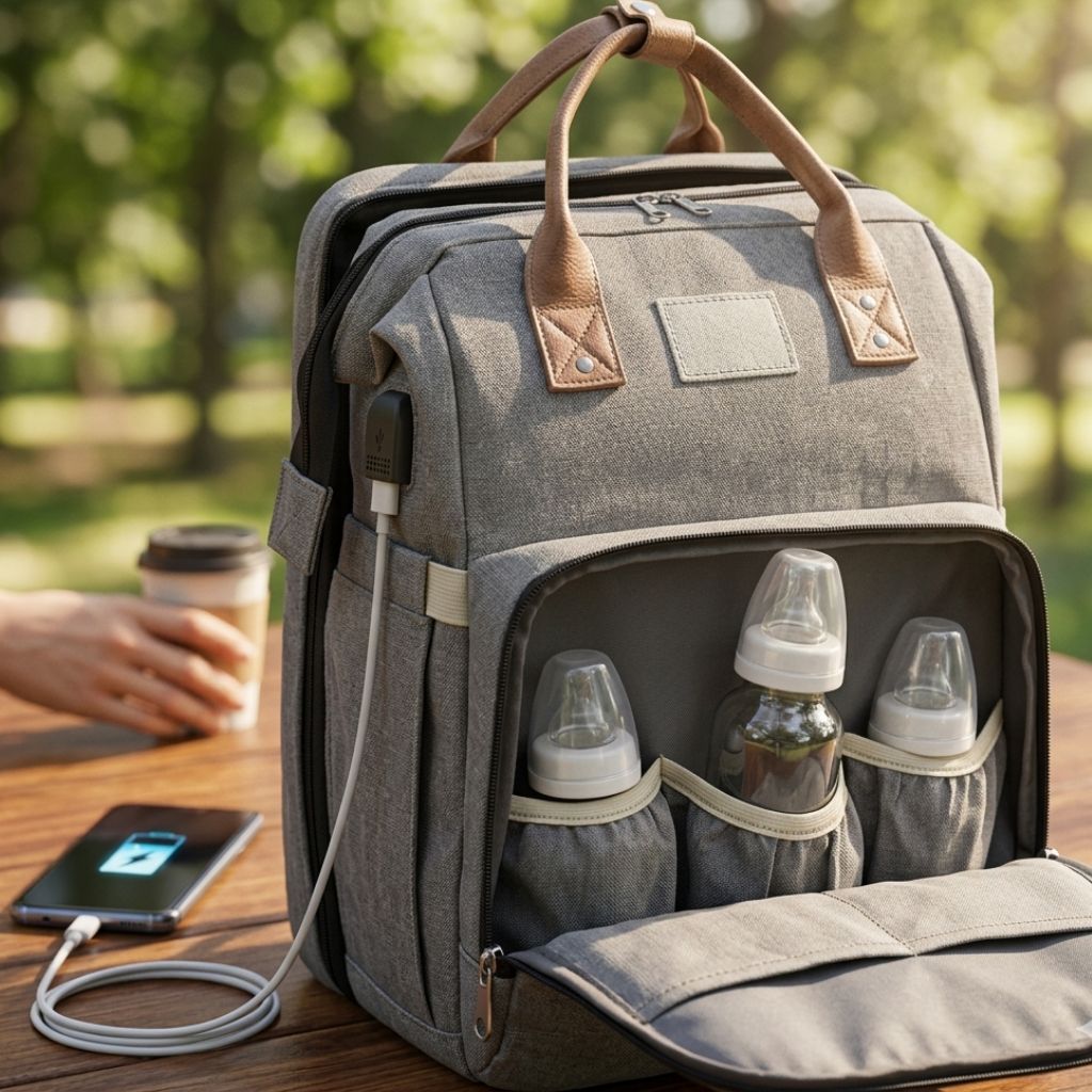 Quedarte sin batería cuando estás fuera con tu bebé puede ser un problema. Esta mochila incluye puerto USB integrado para que puedas cargar tu celular